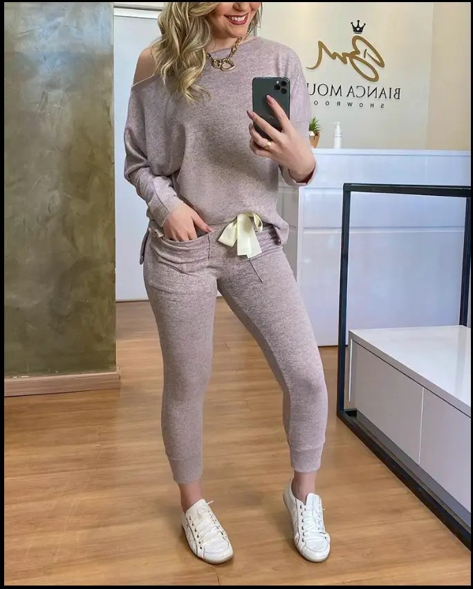 استمتعي بالراحة والأناقة مع بجامتنا القطنية الفاخرة. تصميمها العصري برقبة ساقطة يجعلها مثالية للاسترخاء في المنزل أو الخروج في نزهة مريحة. قماش القطن الطبيعي 100% يضمن لكِ نعومة فائقة وتنفسًا مثاليًا طوال اليوم.