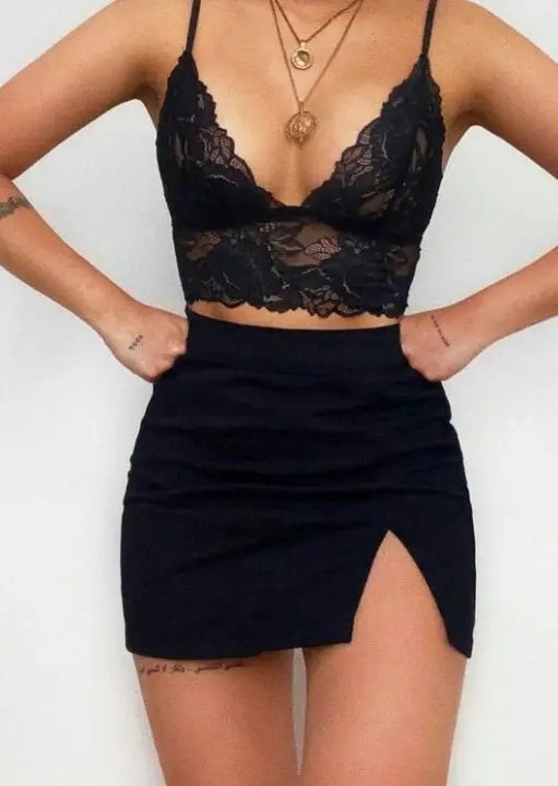 طقم سهره مثير قطعتين توب دانتل وجيب -كود 60